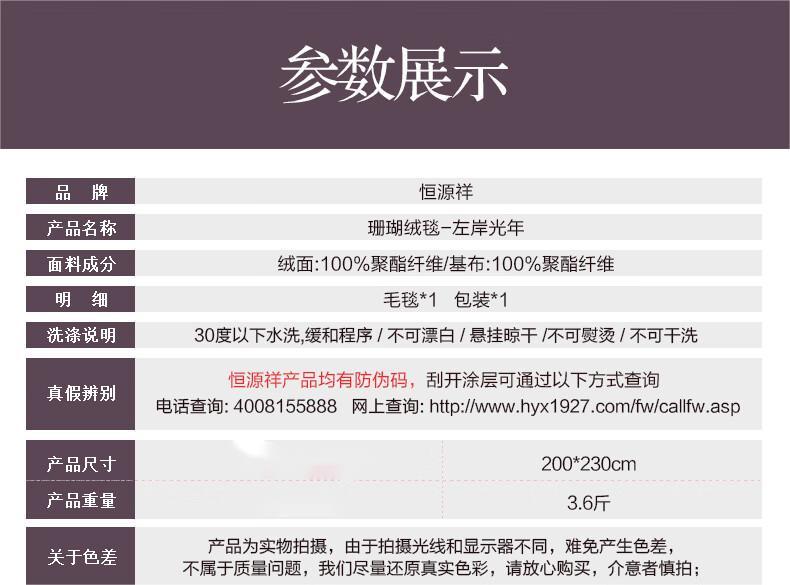 商品属性 [供应商] 深圳市怡亚通供应链股份有限公司 [品牌:] 恒源祥(HYX) [型号:] 左岸光年 [规格:] 200*230cm