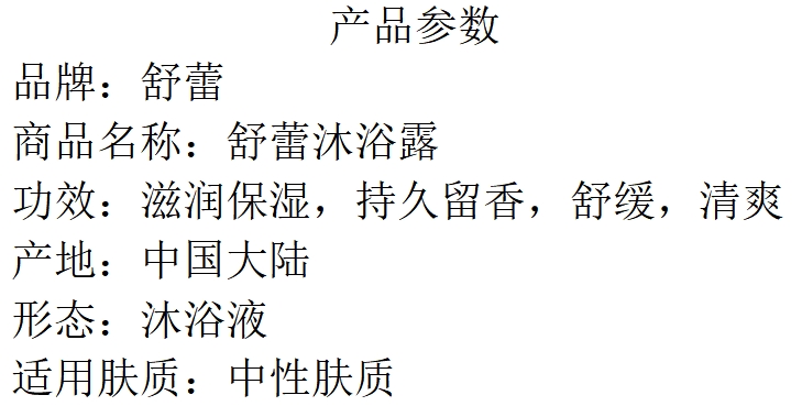 商品属性 [供应商] 深圳市怡亚通供应链股份有限公司 [品牌:] 舒蕾 [型号:] 20039 [规格:] 600ml
