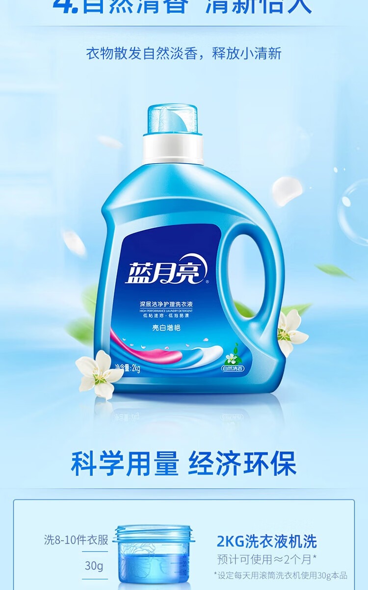 商品属性 [供应商] 深圳市怡亚通供应链股份有限公司 [品牌:] 蓝月亮 [型号:] 自然清香 亮白增艳 [规格:] 2kg