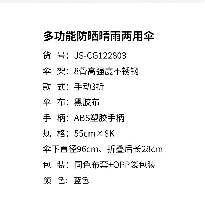 商品属性 [供应商] 科力普科技集团股份有限公司 [商品分类] 晴雨伞 [品牌] 金丝莉 [型号] JS-CG122803