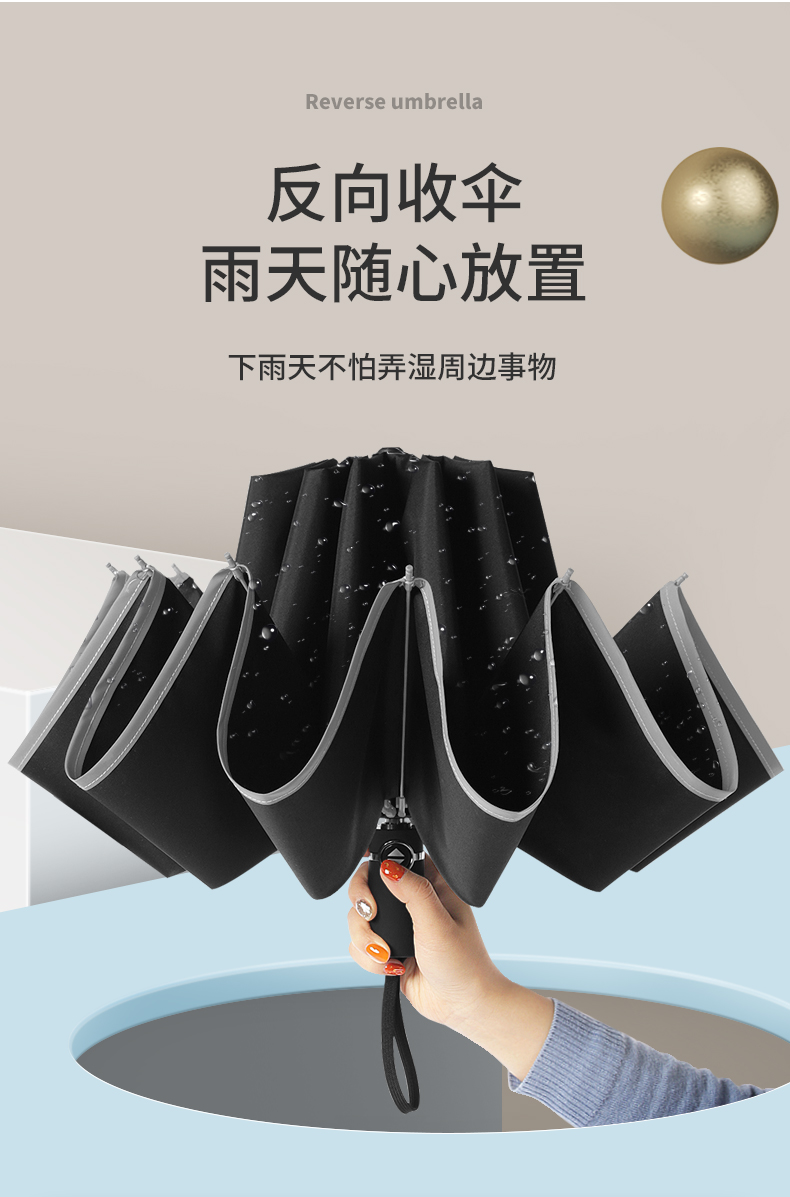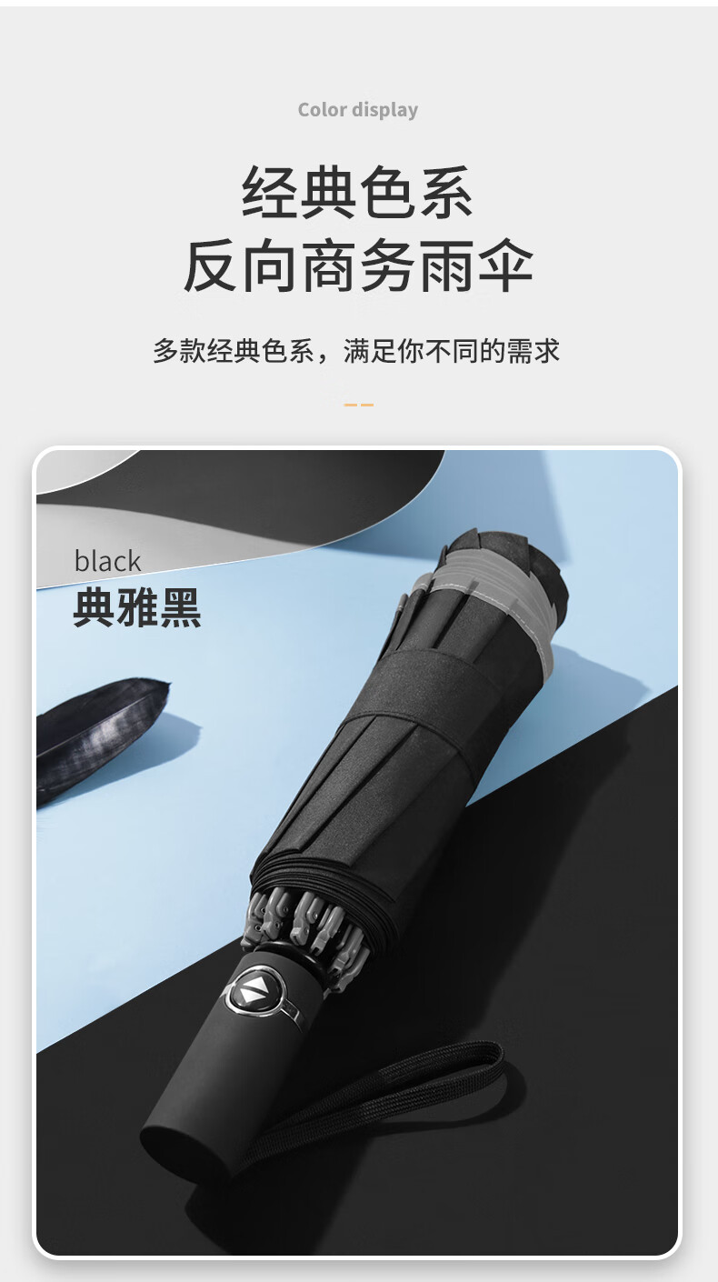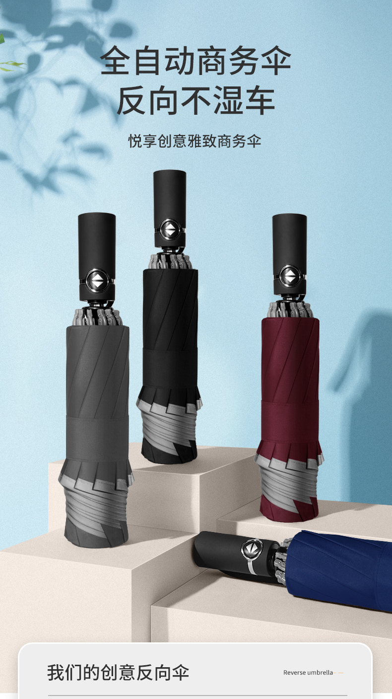 商品属性 [供应商] 德致商成集团有限公司 [雨伞折数] 三折 [打开方式] 全自动 [图案] 纯色 [伞布面料] 碰击布 [适用人群] 成人 [伞骨材质] 玻璃纤维 [骨数] 10骨 [包装清单] 伞x1 [类别] 雨伞