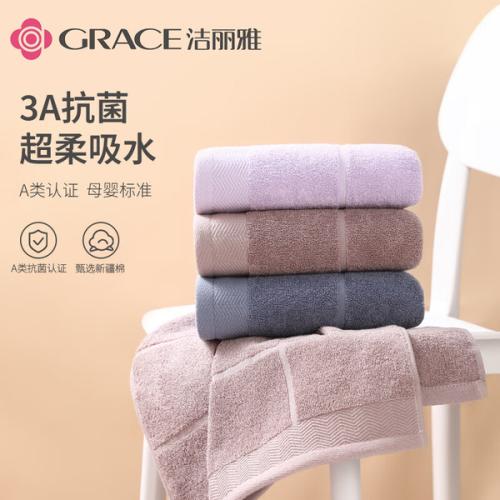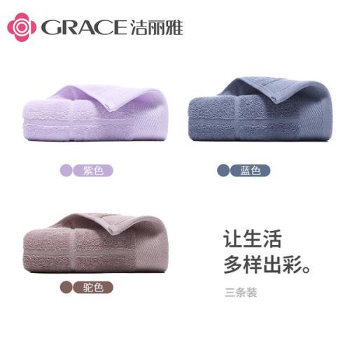 商品属性 [供应商] 上海邮乐网络技术有限公司 [属性名称] 属性值 [品牌] 洁丽雅 [产品尺寸] 72*34cm [颜色分类] 紫 蓝 驼 [材质] 100%棉(档及装饰部分除外) [产品克重] 约100g [产品规格] 3条装