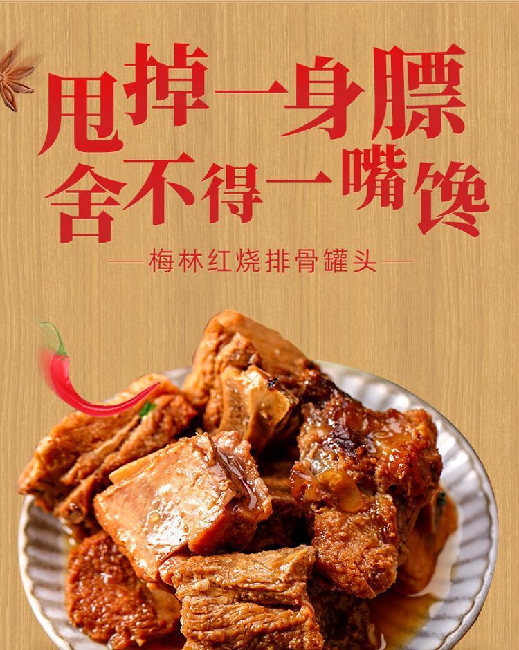 商品属性 [供应商] 深圳齐心集团股份有限公司 [品牌] 梅林(MALING) [型号] 红烧排骨罐头 [保质期] 3年
