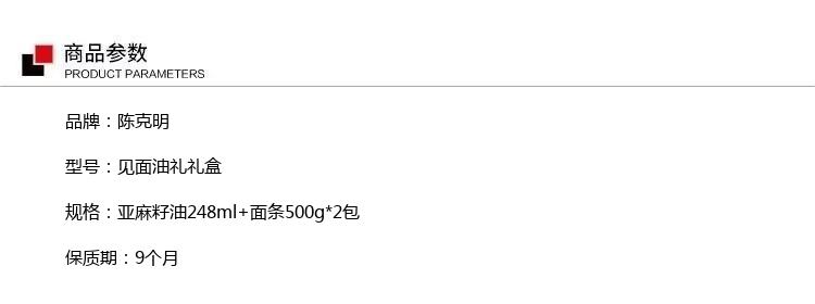 商品属性 [供应商] 深圳齐心集团股份有限公司 [品牌] 陈克明 [型号] 见面油礼礼盒 [保质期] 9个月