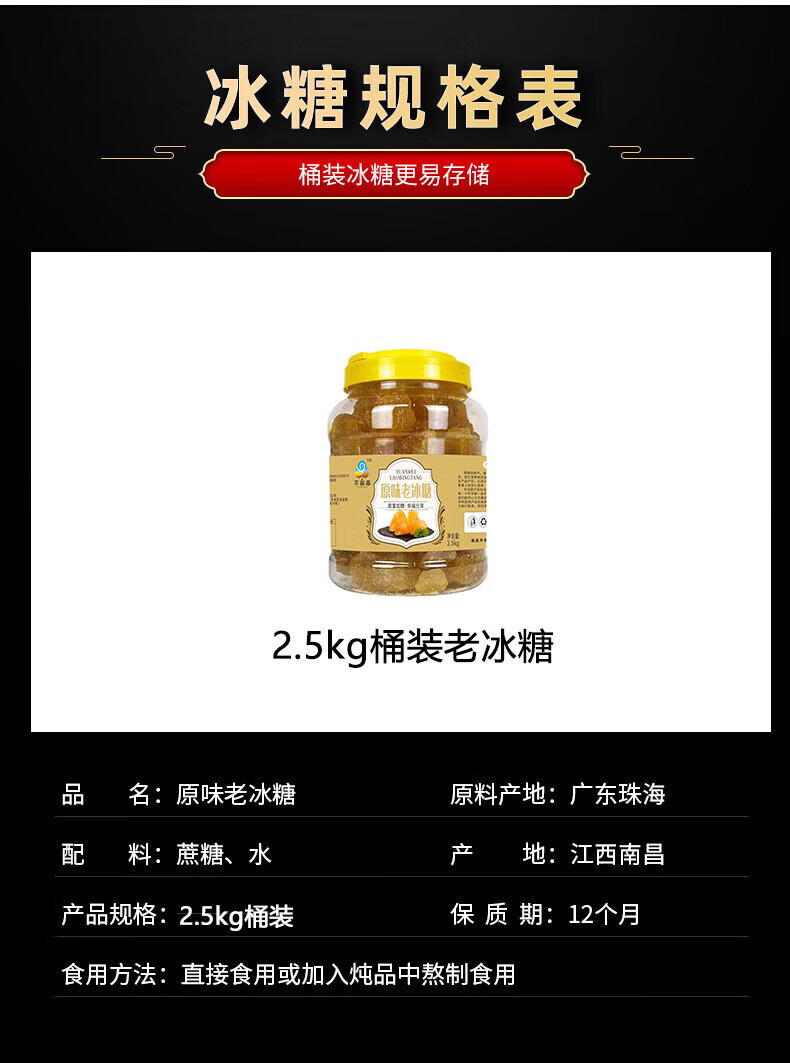 商品属性 [供应商] 深圳市怡亚通供应链股份有限公司 [品牌:] 木亩森 [型号:] 原味老冰糖 [规格:] 2.5kg桶装