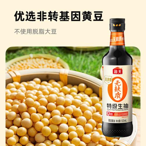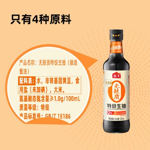商品属性 [供应商] 上海邮乐网络技术有限公司 [产品名称] 海天无麸质特级生抽 [产品规格] 500ml [保质期] 18个月 [产品类型] 酿造酱油 [产品标准号] GB/T 18186 [产地] 广东省佛山市