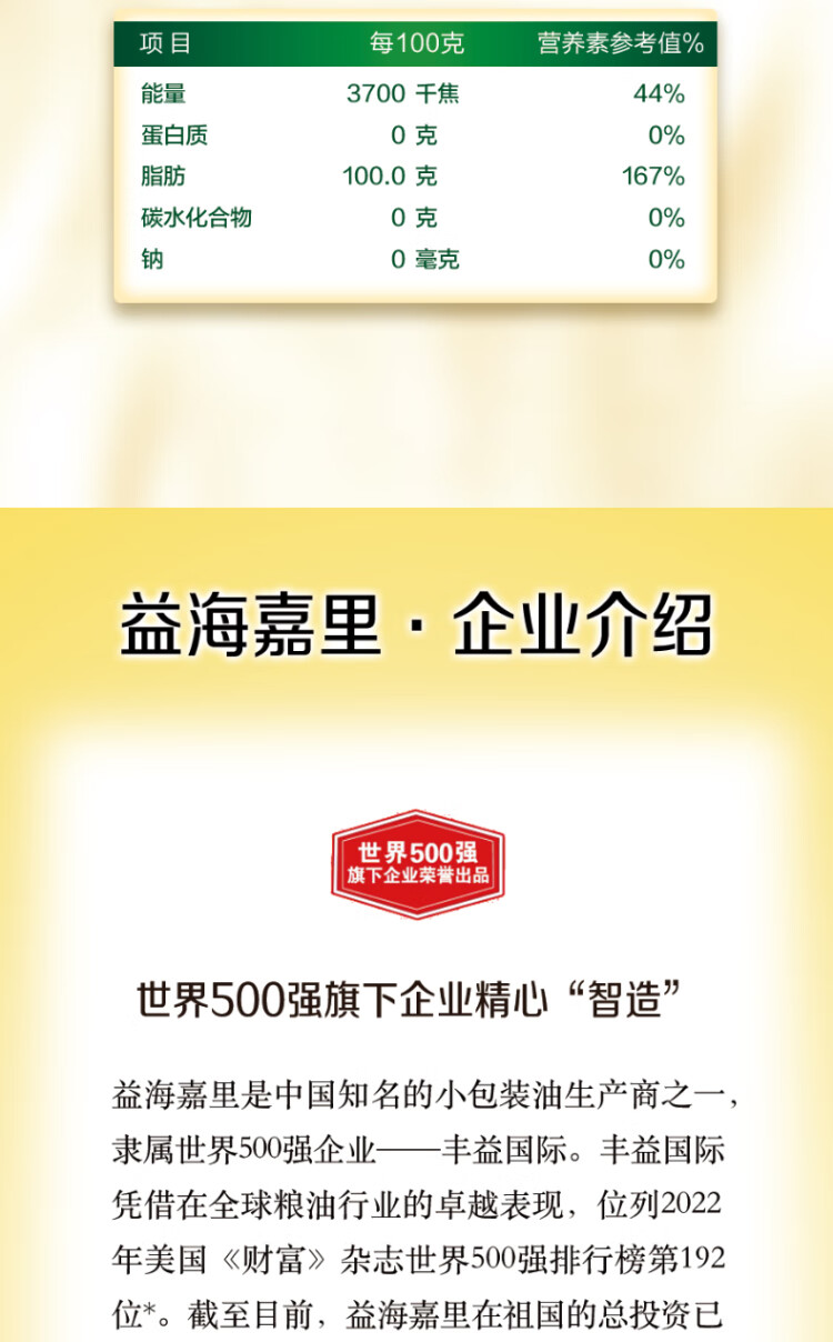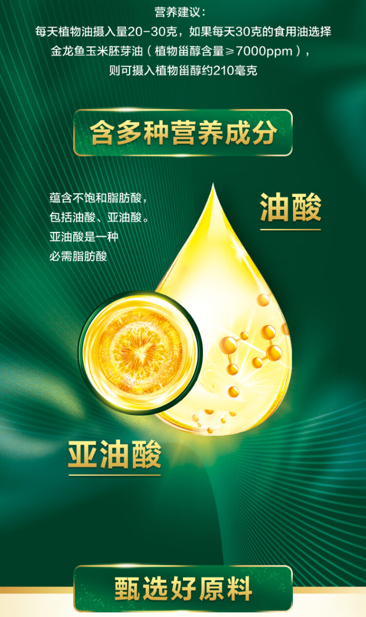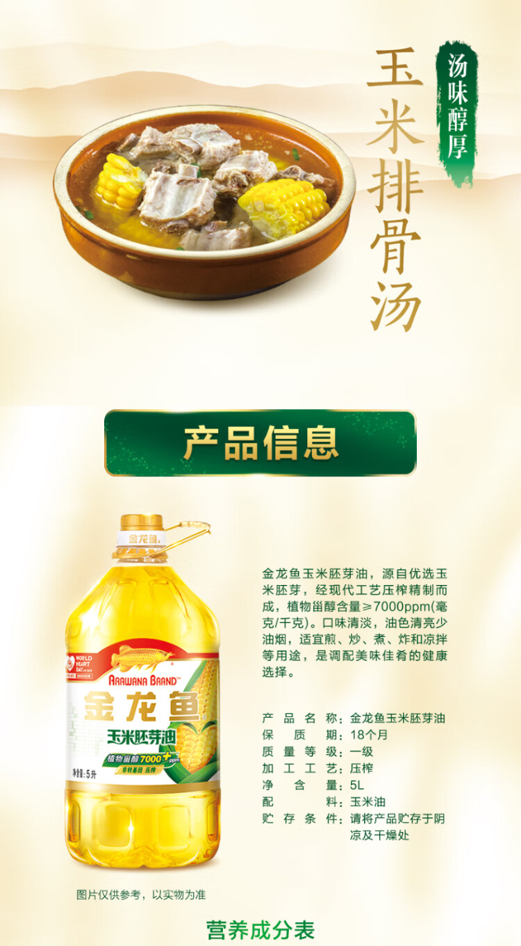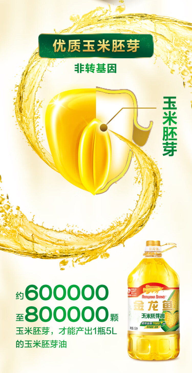 商品属性 [供应商] 深圳市怡亚通供应链股份有限公司 [品牌:] 金龙鱼 [型号:] 玉米胚芽油 [规格:] 5L