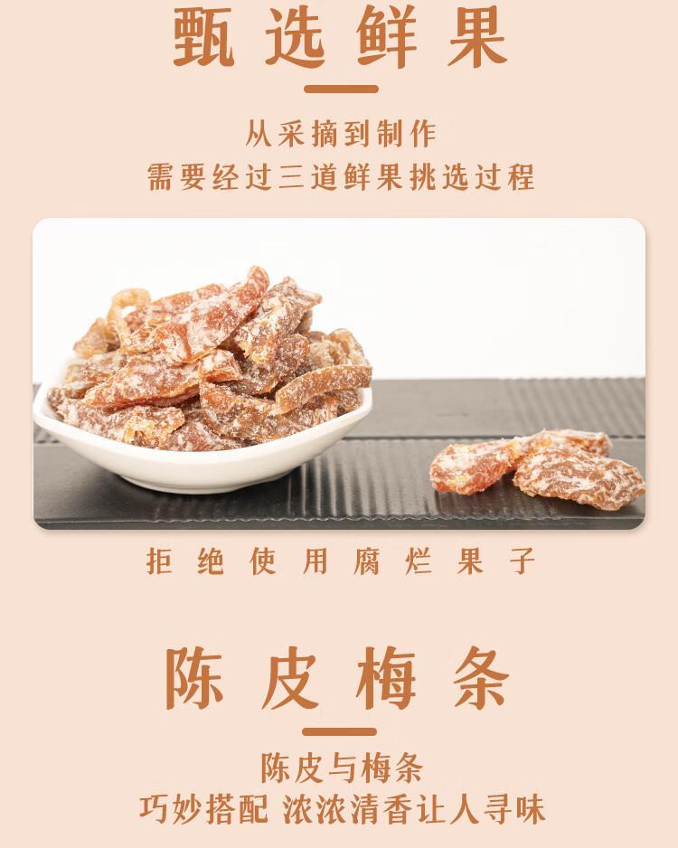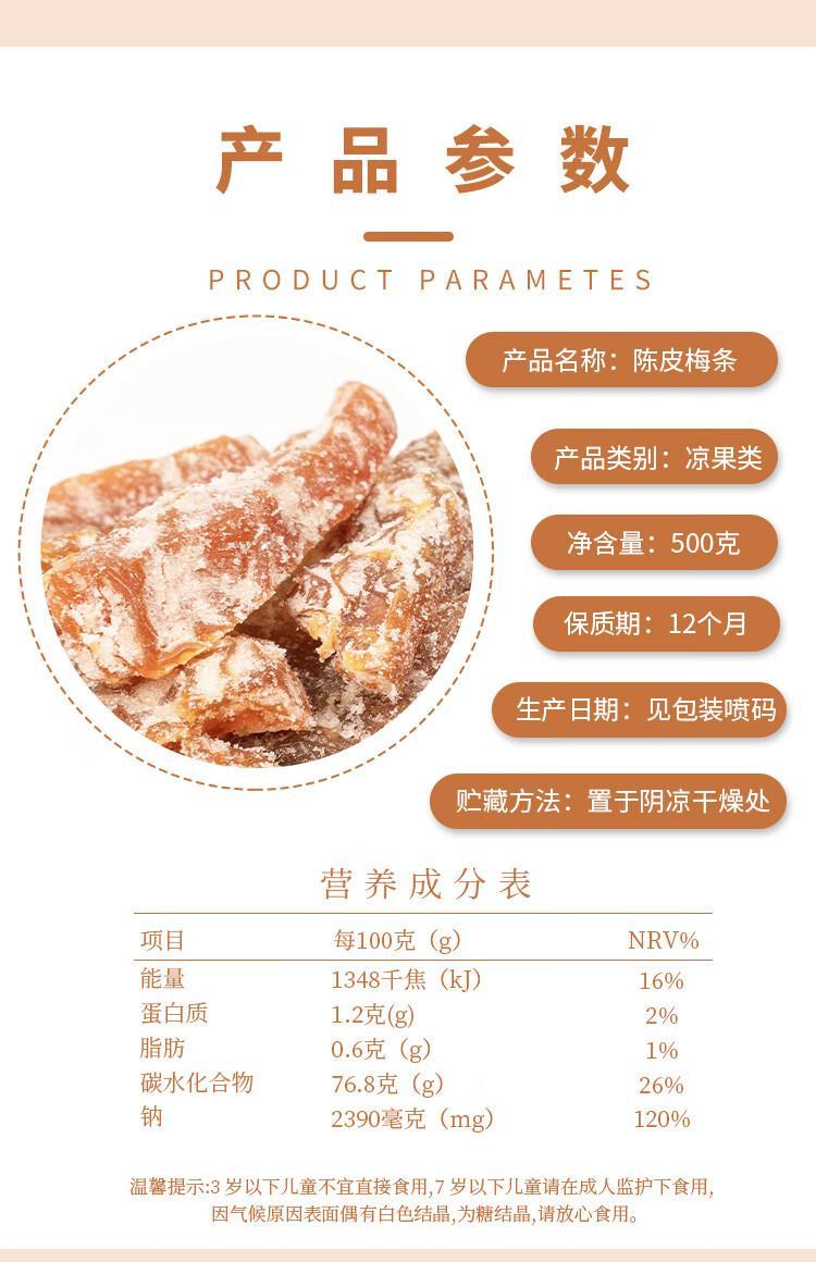商品属性 [供应商] 深圳齐心集团股份有限公司 [品牌] 天生好果 [型号] 陈皮梅条 [保质期] 12个月