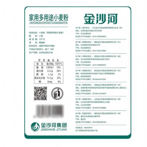 商品属性 [供应商] 上海邮乐网络技术有限公司 [产品名称:] 金沙河家用多用途面粉 [规格:] 5kg [保质期:] 12个月 [配料:] 小麦 [类别:] 精制粉 [储存条件:] 请置于阴凉干燥处