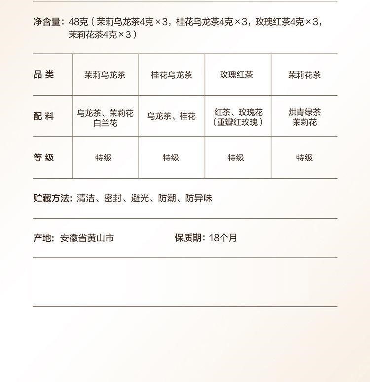 商品属性 [供应商] 深圳齐心集团股份有限公司 [品牌] 小罐茶 [型号] 花开锦时·窨制花茶组合茶 [保质期] 18个月