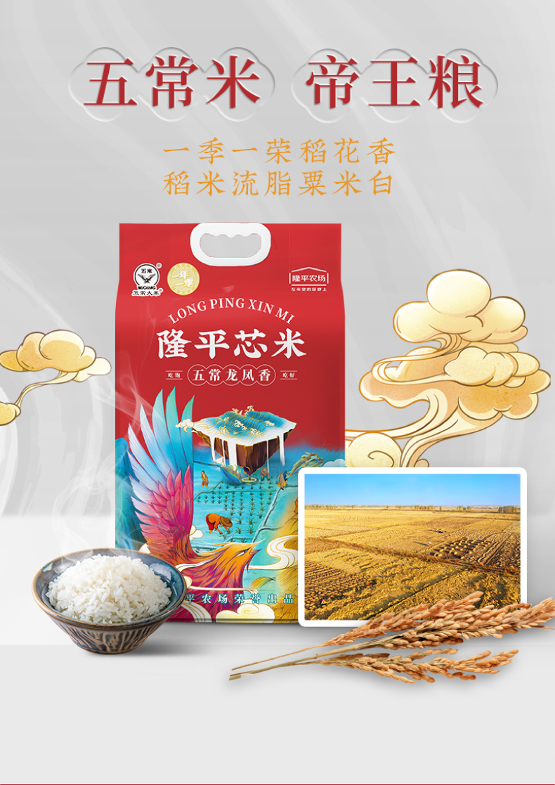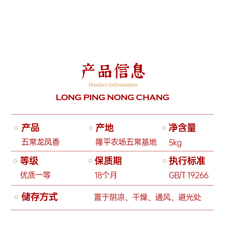 商品属性 [供应商] 深圳市云中鹤科技股份有限公司 [品牌名称:] 隆平芯米 [商品型号:] 五常龙凤香 [商品sku编码:] 1125899908676366 [重量:] 5.00kg [产地:] 五常 [单位:] 袋 [保质期:] 540天