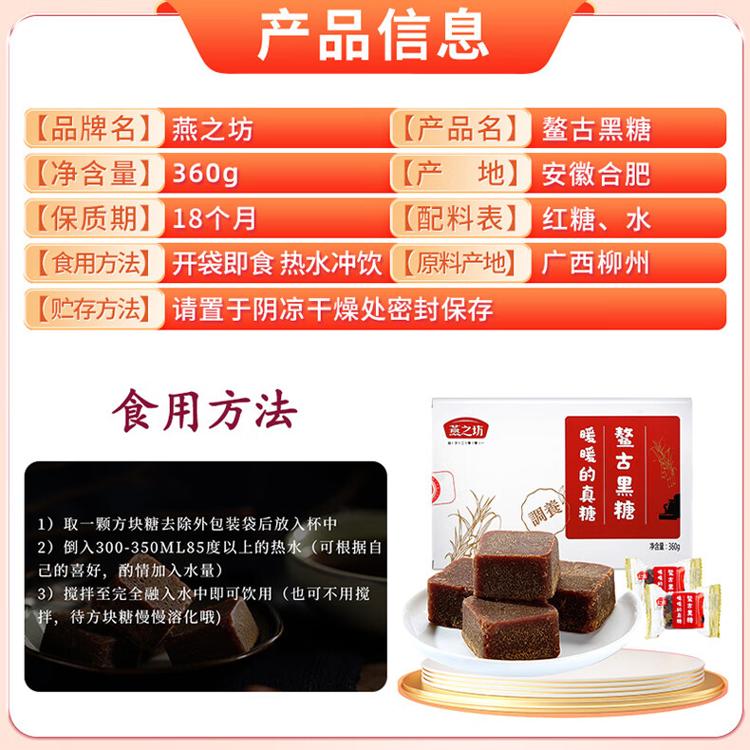 商品属性 [供应商] 深圳齐心集团股份有限公司 [品牌] 燕之坊 [型号] 鳌古黑糖 [保质期] 18个月