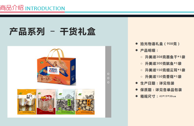 商品属性 [供应商] 科力普科技集团股份有限公司 [类型] 干货 [品牌] 升美滋 [型号] 山珍海味