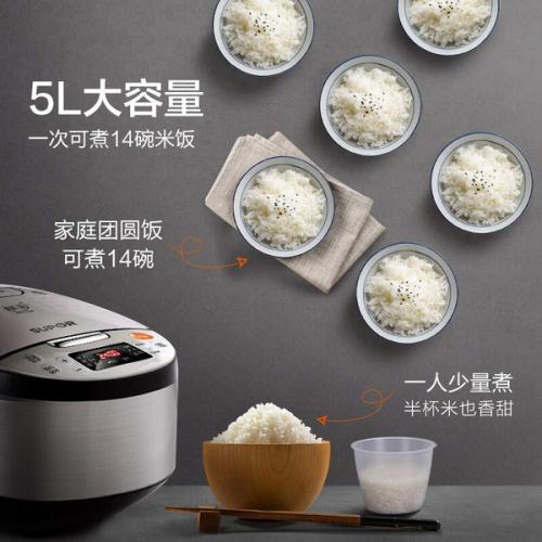 商品属性 [供应商] 上海邮乐网络技术有限公司 [属性名称] 属性值 [产品名称] 苏泊尔球釜电饭煲 [产品型号] CFXB50FC59-75 [额定电压] 220V [额定频率] 50HZ [额定功率] 750W [控制方式] 按键式 [容量] 5L [内胆类别] 球釜 [机身材质] 金属拉丝