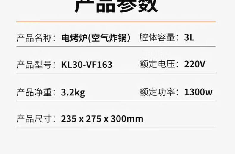 商品属性 [供应商] 得力集团有限公司 [货号] KL30-VF163 [操控方式] 电脑式 [额定功率] 1W [CCC强制性认证] 是 [产品净重] 1kg [开门方式] 抽拉式 [上市时间] 2021-04 [锅体材质] 不粘涂层 [产品尺寸] 长1mm;宽1mm;高1mm [功能] 免预热 [额定电压] 220V [认证型号] KL30-VF163 [容量] 1L [底盘类型] 平面底盘