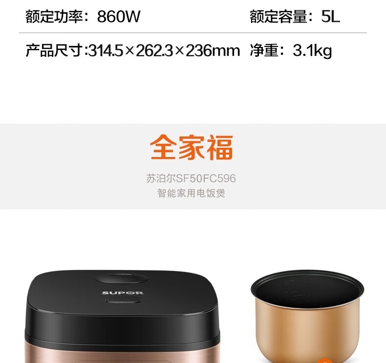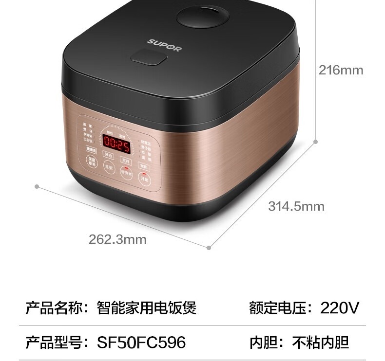 商品属性 [供应商] 深圳市怡亚通供应链股份有限公司 [品牌:] 苏泊尔(SUPOR) [型号:] SF50FC596 [规格:] 5L