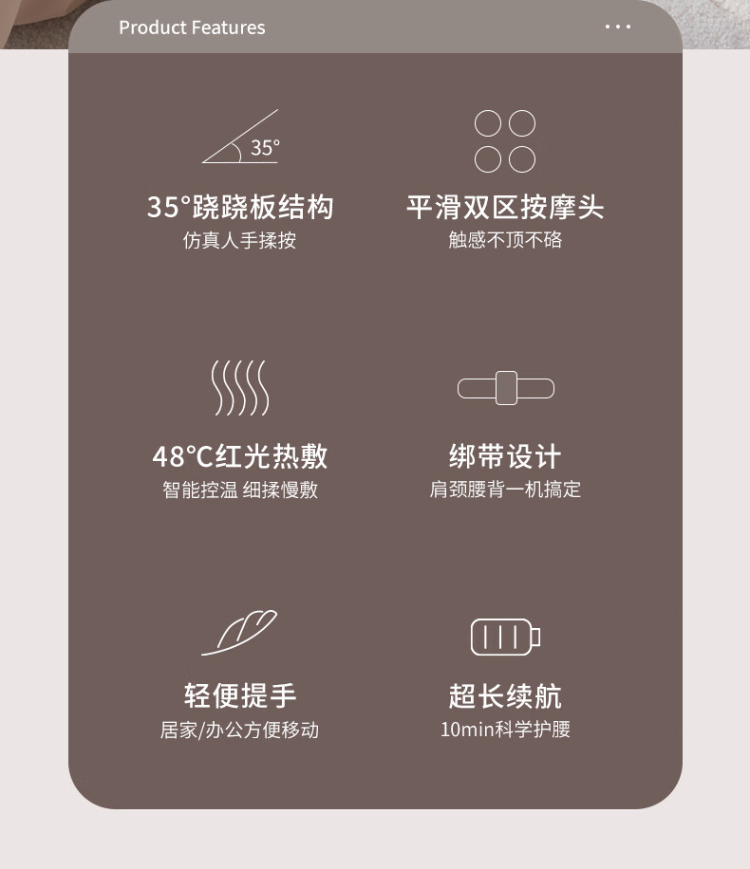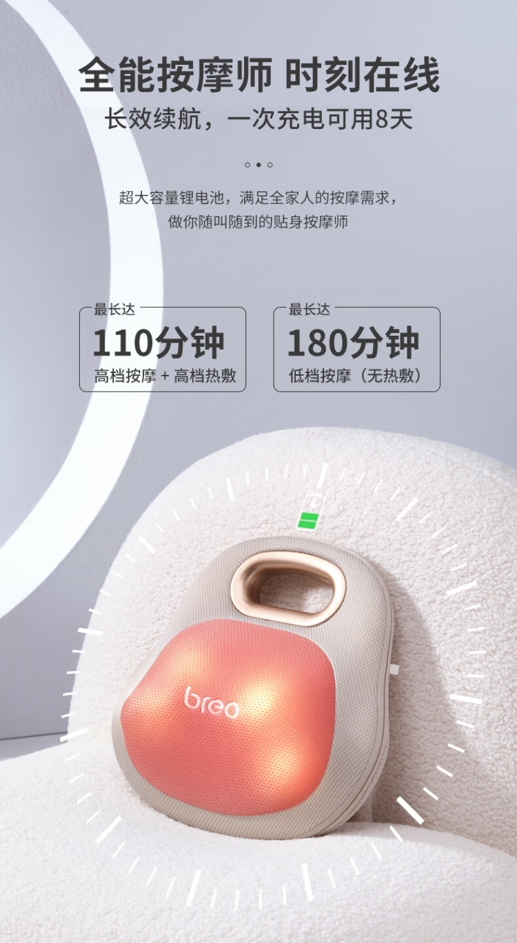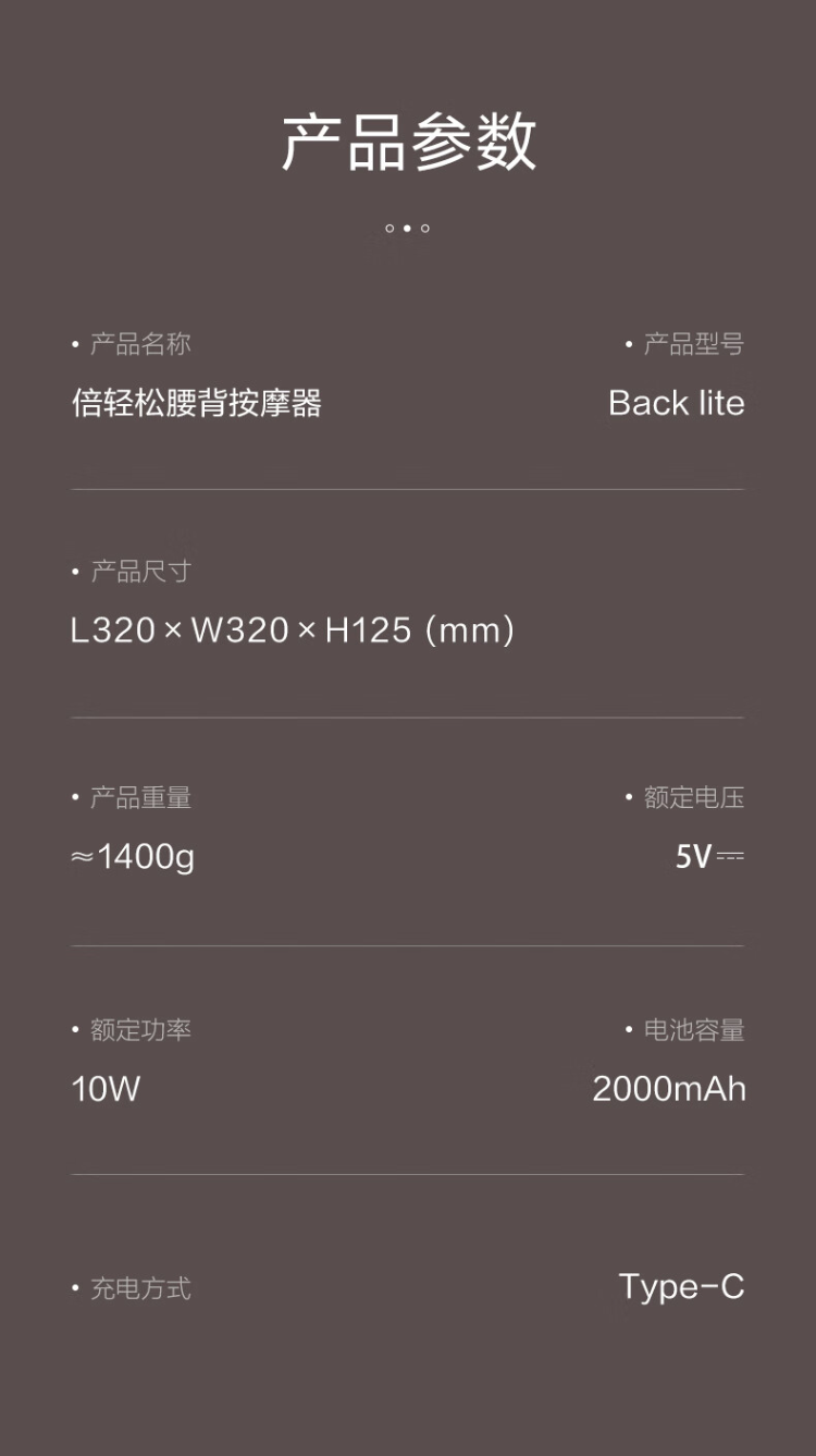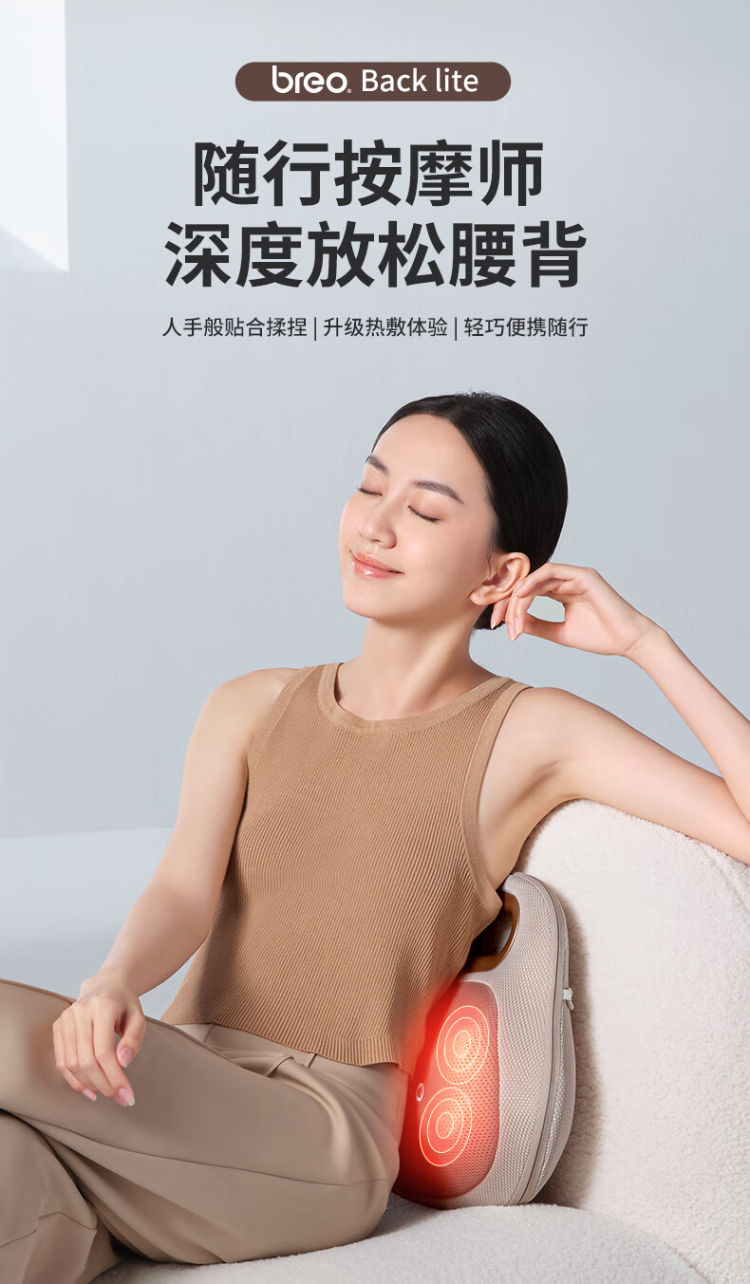 商品属性 [供应商] 得力集团有限公司 [品牌] 倍轻松(breo) [型号] Back Lite [商品标题] 倍轻松(breo)Back Lite腰部按摩器 按摩垫靠垫 热敷便携全身可用(单位:台) [销售单位] 台