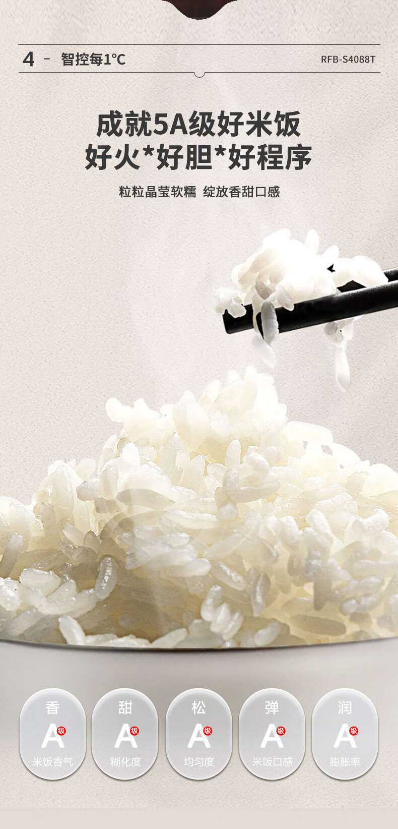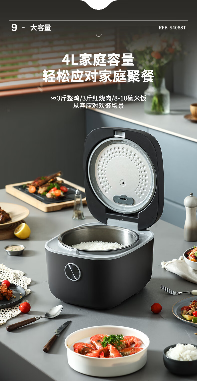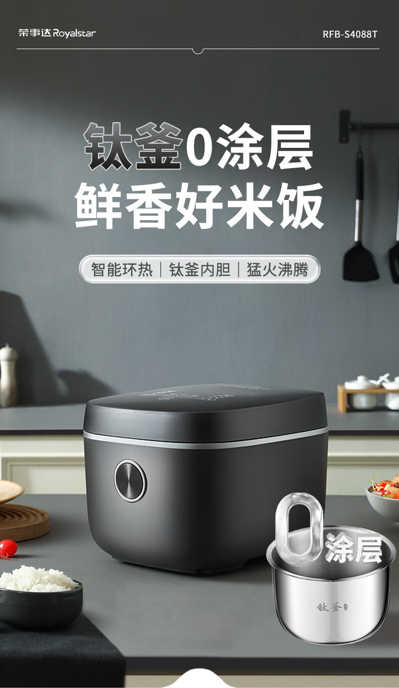 商品属性 [供应商] 得力集团有限公司 [品牌] 荣事达(Royalstar) [型号] RFB-S4088T [商品标题] 荣事达(Royalstar)RFB-S4088T 0涂层电饭煲4升(单位:台) [销售单位] 台