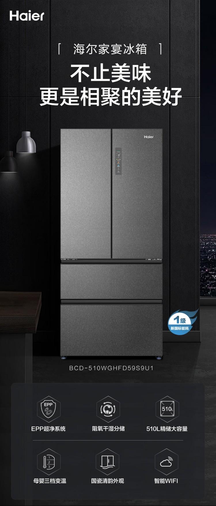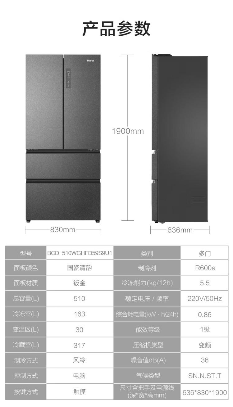 商品属性 [供应商] 深圳市怡亚通供应链股份有限公司 [品牌:] 海尔(Haier) [型号:] BCD-510WGHFD59S9U1 [规格:] 一级能效 510升