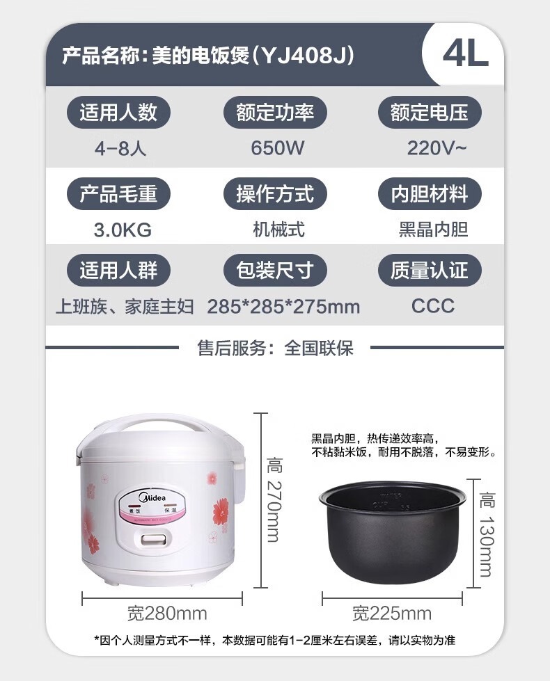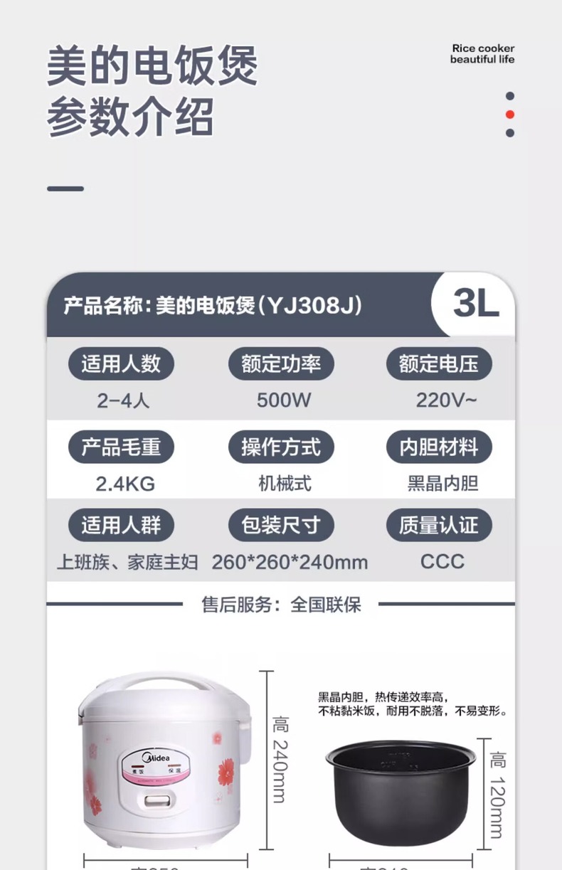 商品属性 [供应商] 深圳市怡亚通供应链股份有限公司 [品牌:] 美的(Midea) [型号:] MB-YJ408J [规格:] 4L