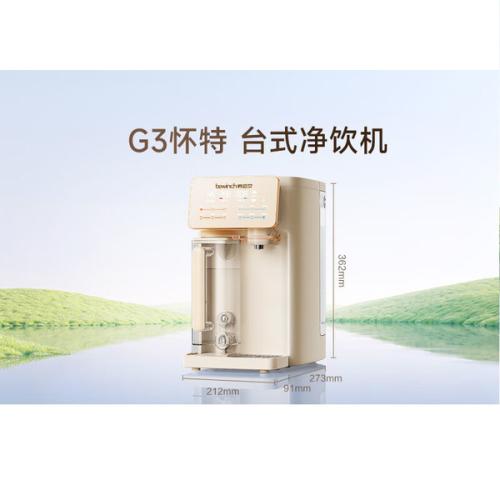 商品属性 [供应商] 大江科技集团有限公司 [可替换滤芯] RO反渗透膜 [类型] 加热净水器 [适用场景] 全屋 [安装方式] 免安装 [过滤原理] 反渗透 [额定净水量] 3000L [出水温度] 热水;常温水 [是否有压力桶] 没有压力桶 [额定功率] 2200W [滤芯级数] 3级 [产品尺寸(mm)] 宽212mm;深364mm;高362mm [产品净重(kg)] 7.1kg [净水器品牌] 碧云泉 [型号] G3-怀特R315 [滤芯] RO反渗透膜 [品牌] 碧云泉 [包装清单] 主机*1,说明书*1