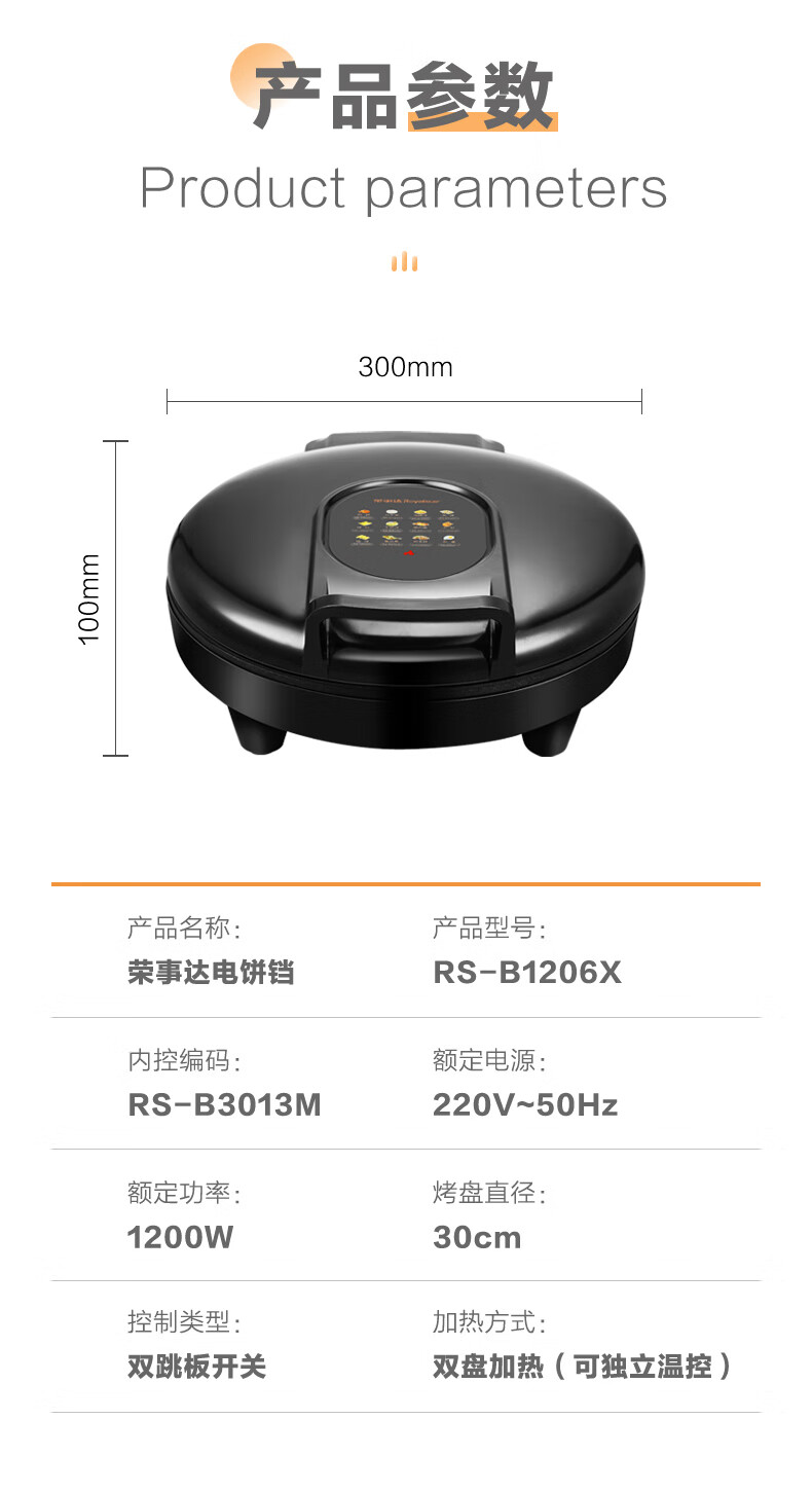商品属性 [供应商] 得力集团有限公司 [品牌] 荣事达(Royalstar) [型号] RS-B1260X [商品标题] 荣事达RS-B1260X电饼铛(单位:台) [销售单位] 台