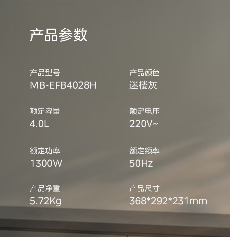 商品属性 [供应商] 得力集团有限公司 [品牌] 美的(Midea) [型号] MB-EFB4028H