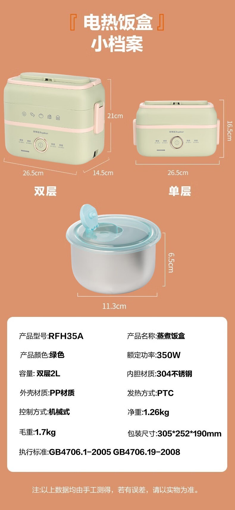 商品属性 [供应商] 深圳市怡亚通供应链股份有限公司 [品牌:] 荣事达(Royalstar) [型号:] RFH35A [规格:] 双层 2L