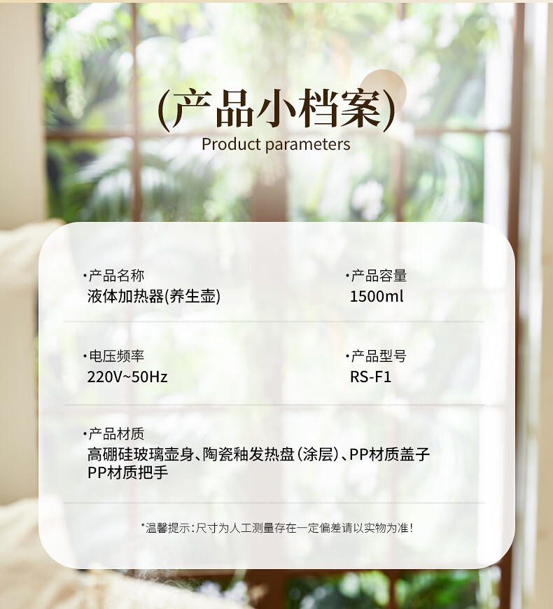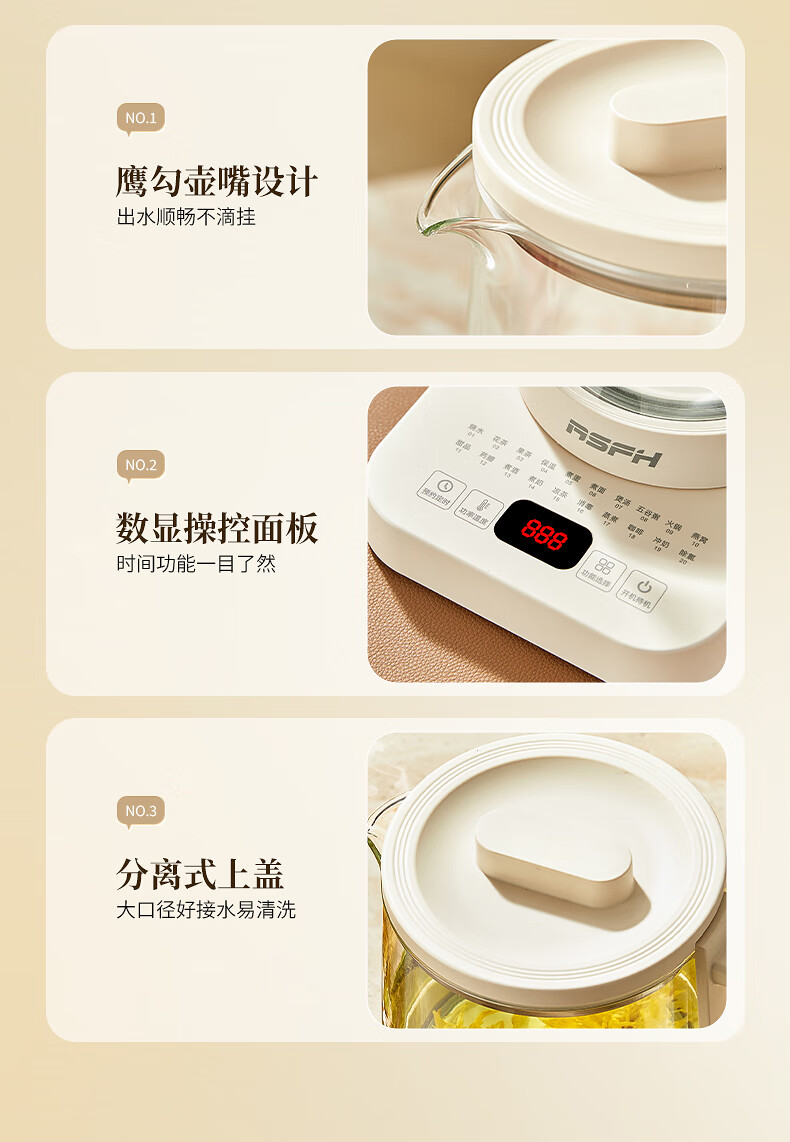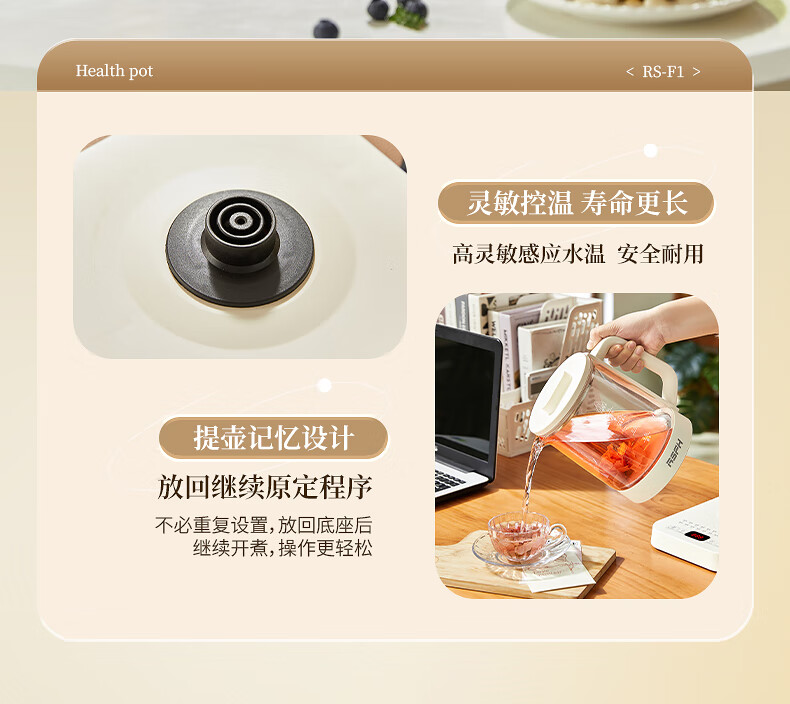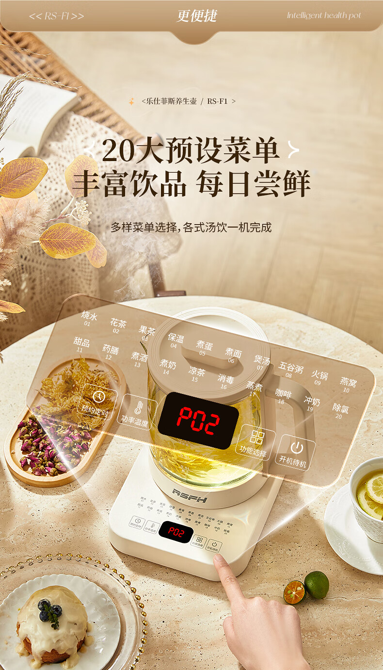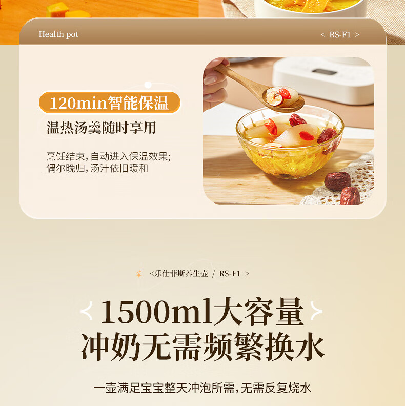 商品属性 [供应商] 得力集团有限公司 [品牌] 乐仕菲斯 [型号] RS-F1 [商品标题] 乐仕菲斯 RS-F1 多功能养生壶 1.5L (单位:台) [销售单位] 台