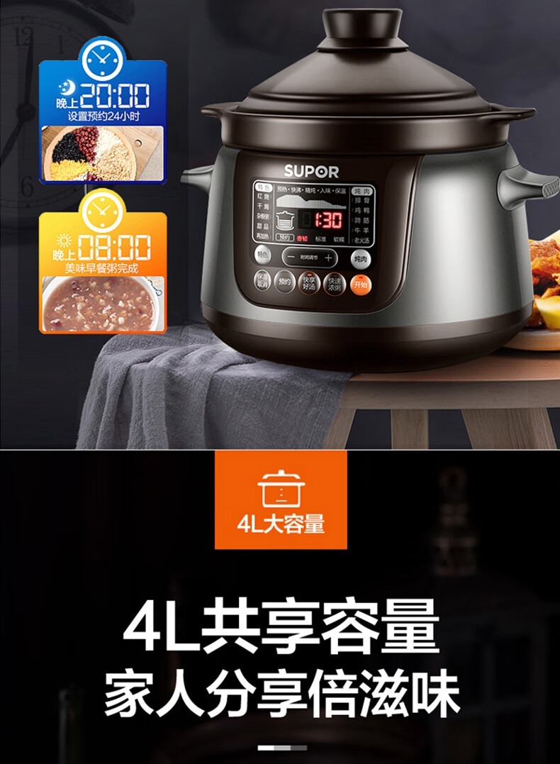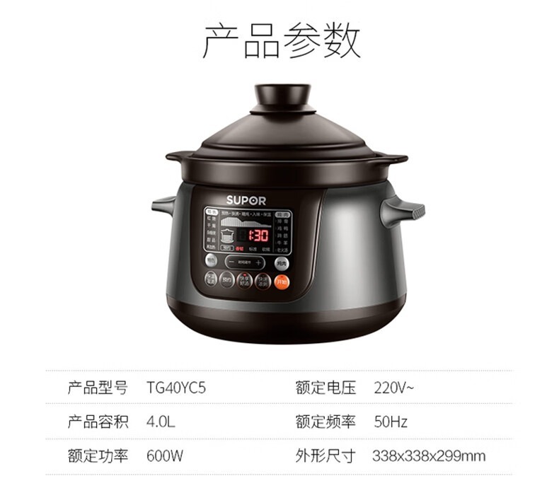 商品属性 [供应商] 深圳市怡亚通供应链股份有限公司 [品牌:] 苏泊尔(SUPOR) [型号:] 4TG40YC5 [规格:] 4L