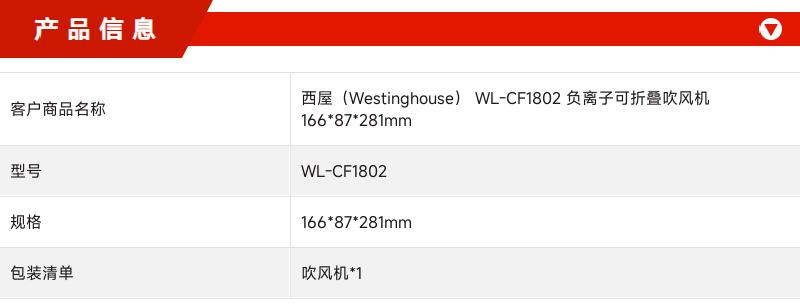 商品属性 [供应商] 史泰博(上海)有限公司 [品牌] 西屋(Westinghouse) [型号] WL-CF1802