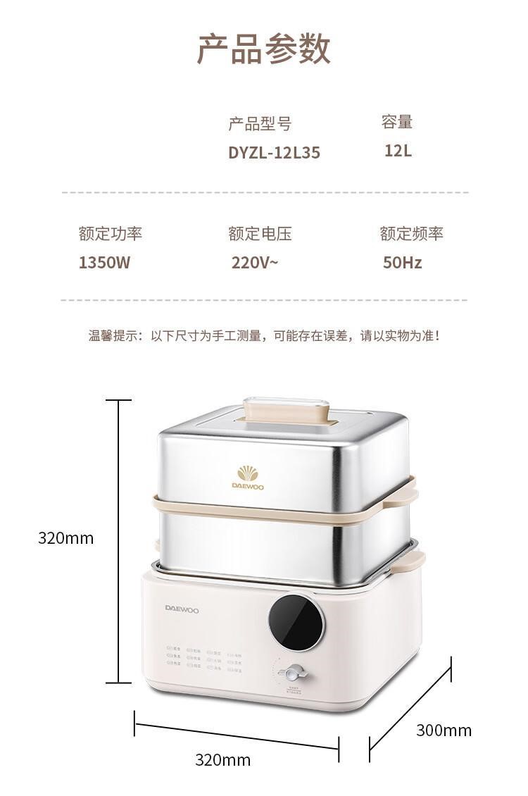 商品属性 [供应商] 深圳齐心集团股份有限公司 [品牌] 大宇(DAEWOO) [型号] DYZL-12L35 [额定功率] 1350W