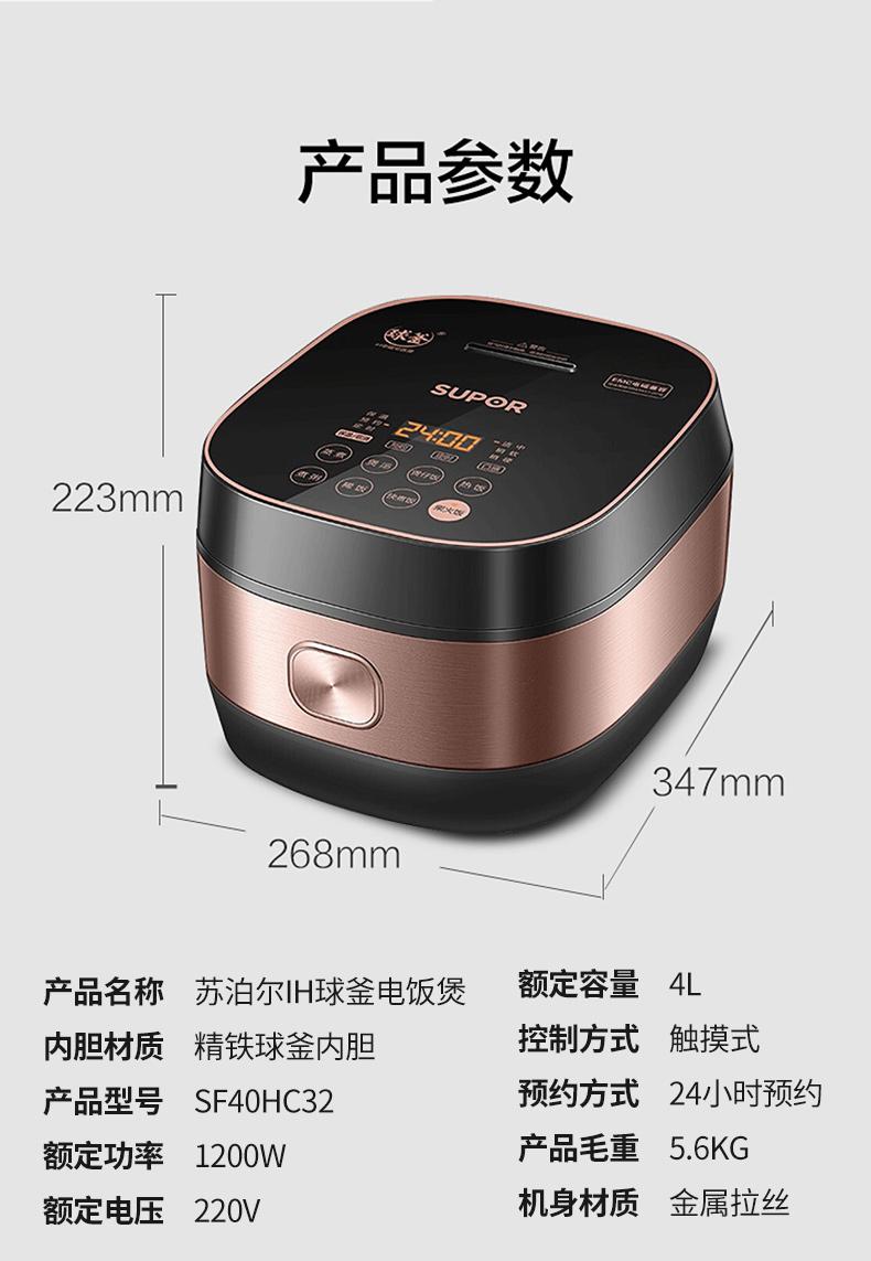 商品属性 [供应商] 深圳市怡亚通供应链股份有限公司 [品牌:] 苏泊尔(SUPOR) [型号:] SF40HC32 [规格:] 4L