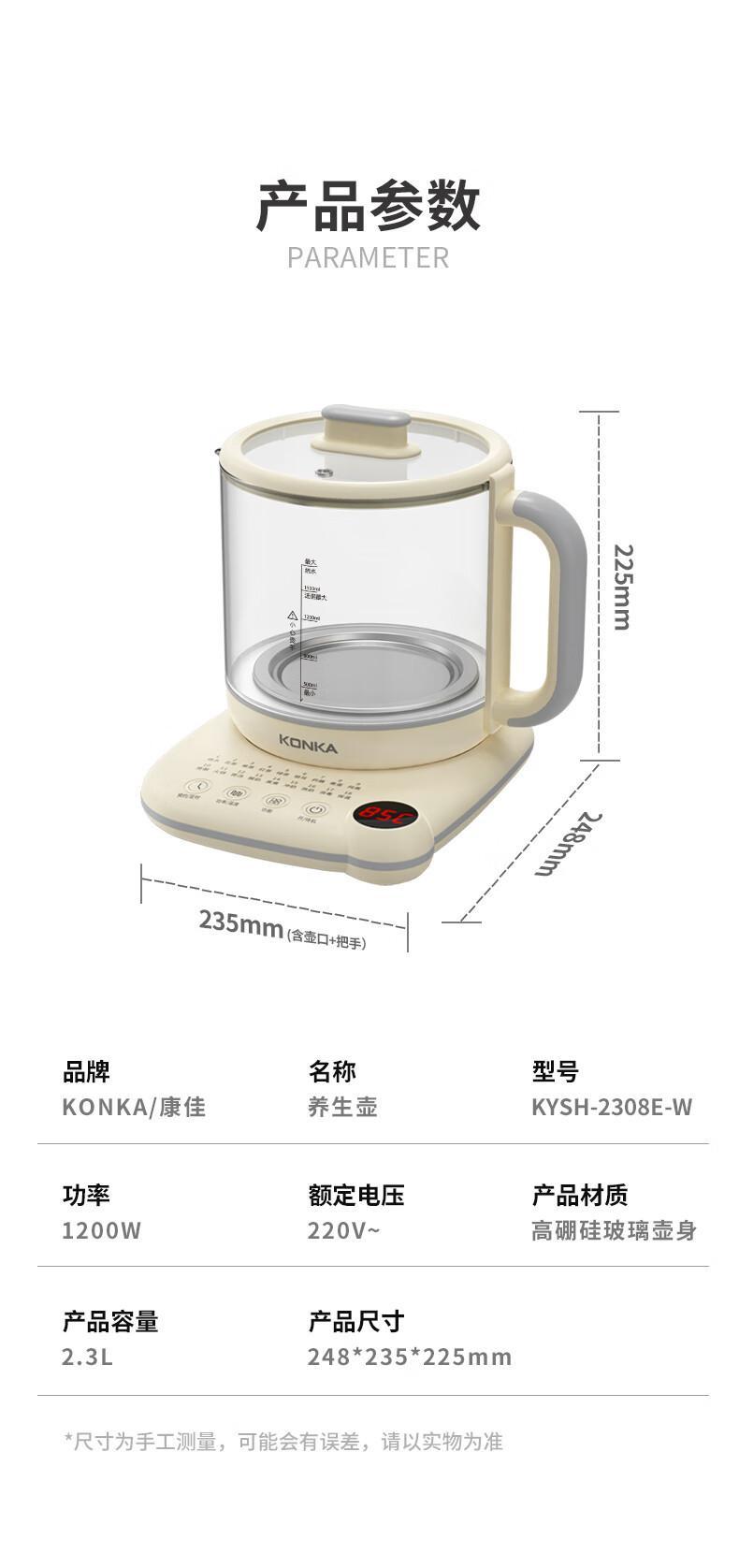 商品属性 [供应商] 深圳市怡亚通供应链股份有限公司 [品牌:] 康佳(KONKA) [型号:] KYSH-2308E-W [规格:] 2.3L 含底座
