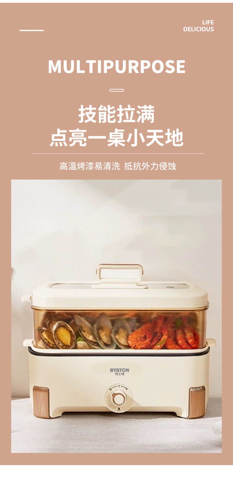 商品属性 [供应商] 得力集团有限公司 [品牌] 栢士德 [型号] BSD-H1205 [商品标题] 栢士德(BYSTON)BSD-H1205多功能电火锅(单位:台) [销售单位] 台