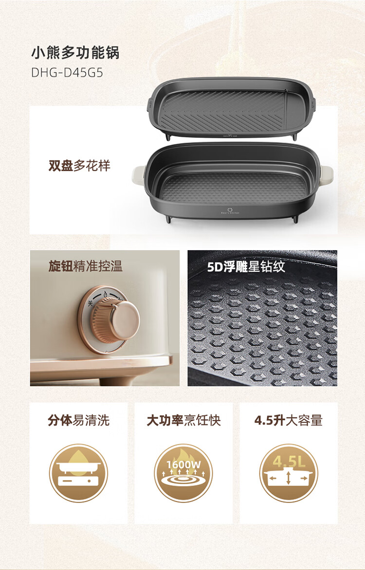 商品属性 [供应商] 深圳市怡亚通供应链股份有限公司 [品牌:] 小熊(Bear) [型号:] DHG-D45G5 [规格:] 4.5L