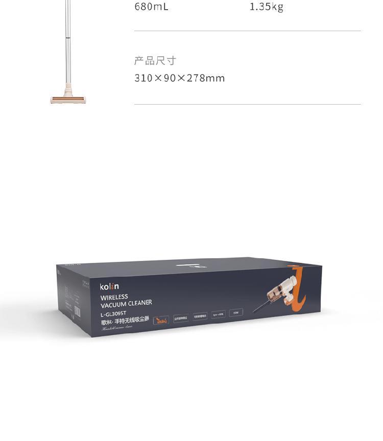 商品属性 [供应商] 深圳齐心集团股份有限公司 [品牌] 歌林(kolin) [型号] L-GL3095T [产品尺寸] 310*90*278mm