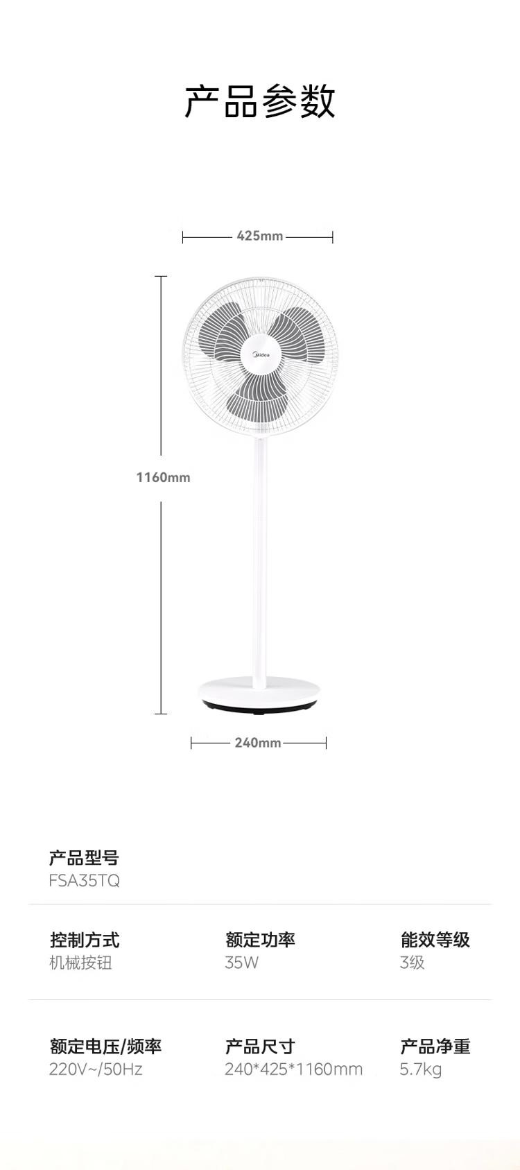 商品属性 [供应商] 深圳齐心集团股份有限公司 [品牌] 美的(Midea) [型号] FSA35TQ [额定功率] 35W