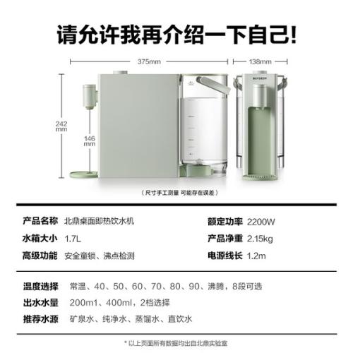 商品属性 [供应商] 全程速达科技有限公司 [名称] 内容 [品牌:] 北鼎 [商品名称:] 即热式饮水机 [型号:] S805