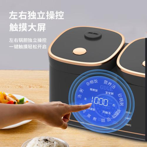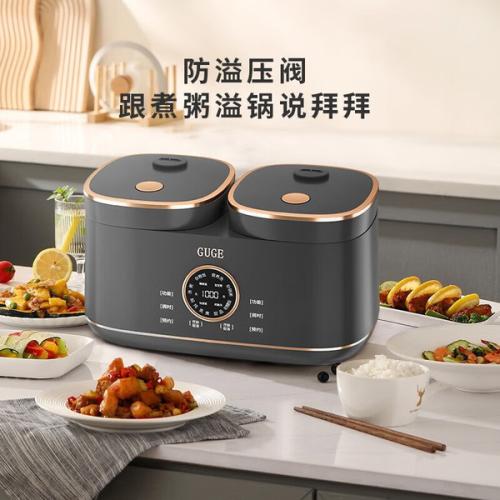 商品属性 [供应商] 上海邮乐网络技术有限公司 [属性名称] 属性值 [品牌] 谷格(GUGE) [产品名称] 智能养生电饭锅 [产品型号] GB88 [产品颜色] 灰色 [内胆容量] 左2L+右2L [额定电压] 220V-/50Hz [产品功率] 左400W+右400W [产品尺寸] 40.5*22.5*23cm [净重] 4.9kg