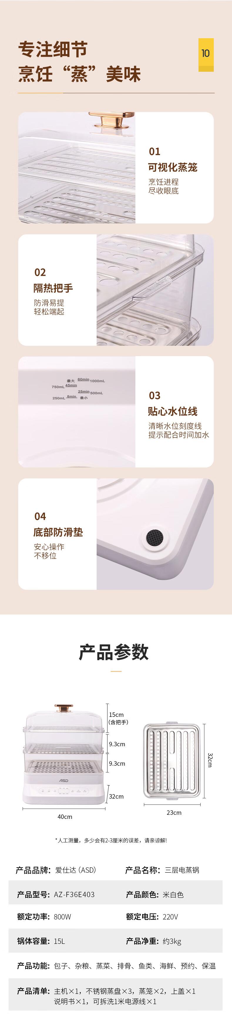 商品属性 [供应商] 深圳市怡亚通供应链股份有限公司 [品牌:] 爱仕达(ASD) [型号:] AZ-F36E403 [规格:] 15L