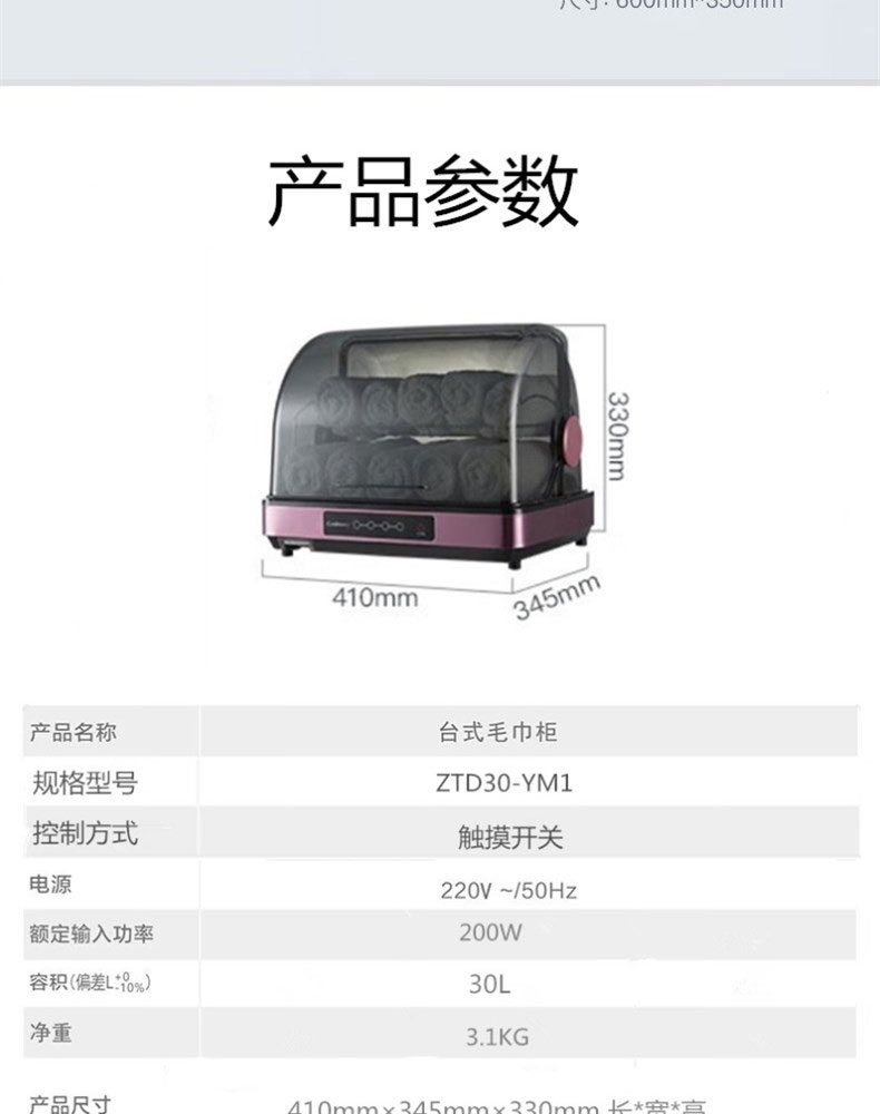 商品属性 [供应商] 科力普科技集团股份有限公司 [消毒时间] ≥60min [额定功率] 200W [容积] 30L [童锁功能] 不支持 [消毒方式] 热风中温+紫外线灯保洁 [品牌] 康宝 [型号] ZTD30-YM1