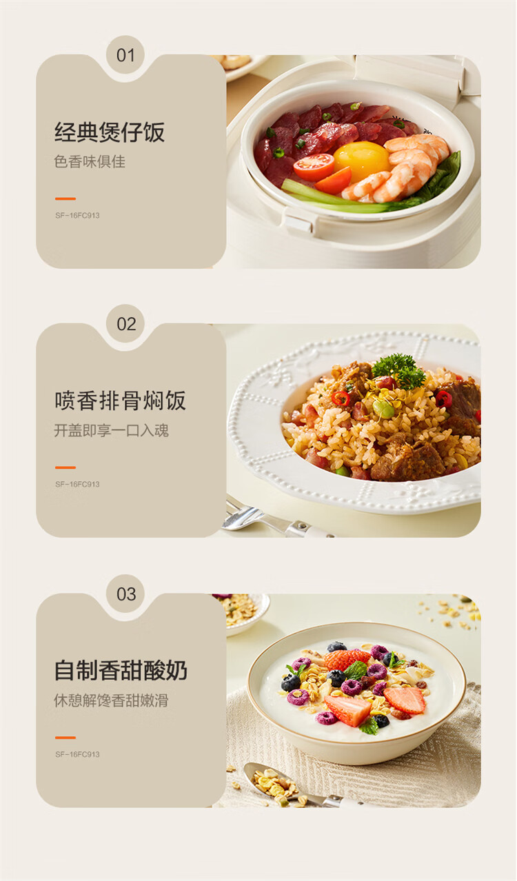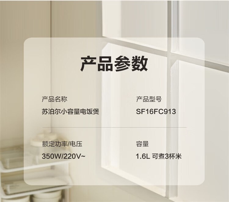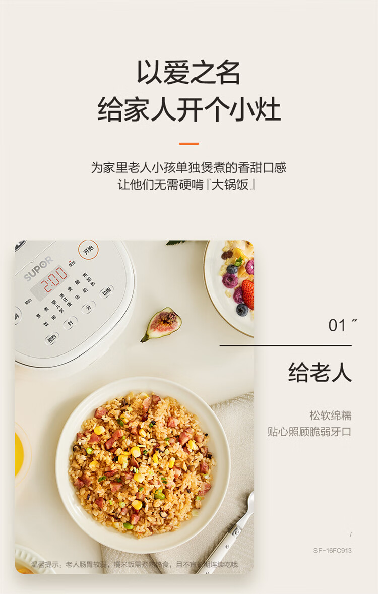 商品属性 [供应商] 深圳市云中鹤科技股份有限公司 [品牌名称:] 苏泊尔(SUPOR) [商品型号:] SF16FC913 [商品sku编码:] 1125899909101963 [重量:] 2.50kg [产地:] 中国 [单位:] 个