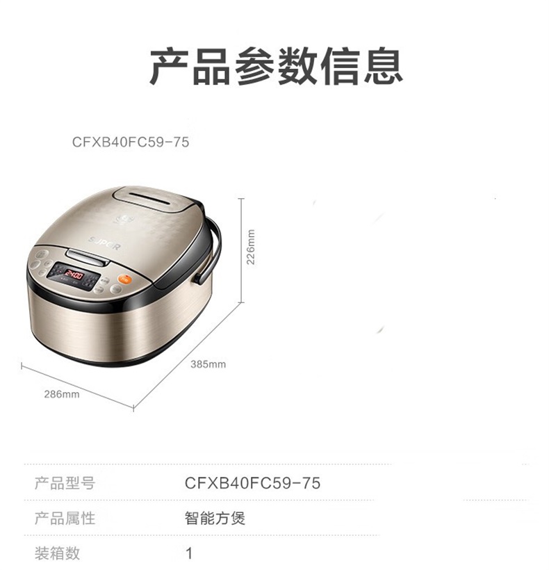 商品属性 [供应商] 科力普科技集团股份有限公司 [品牌] 苏泊尔 [型号] CFXB40FC59-75