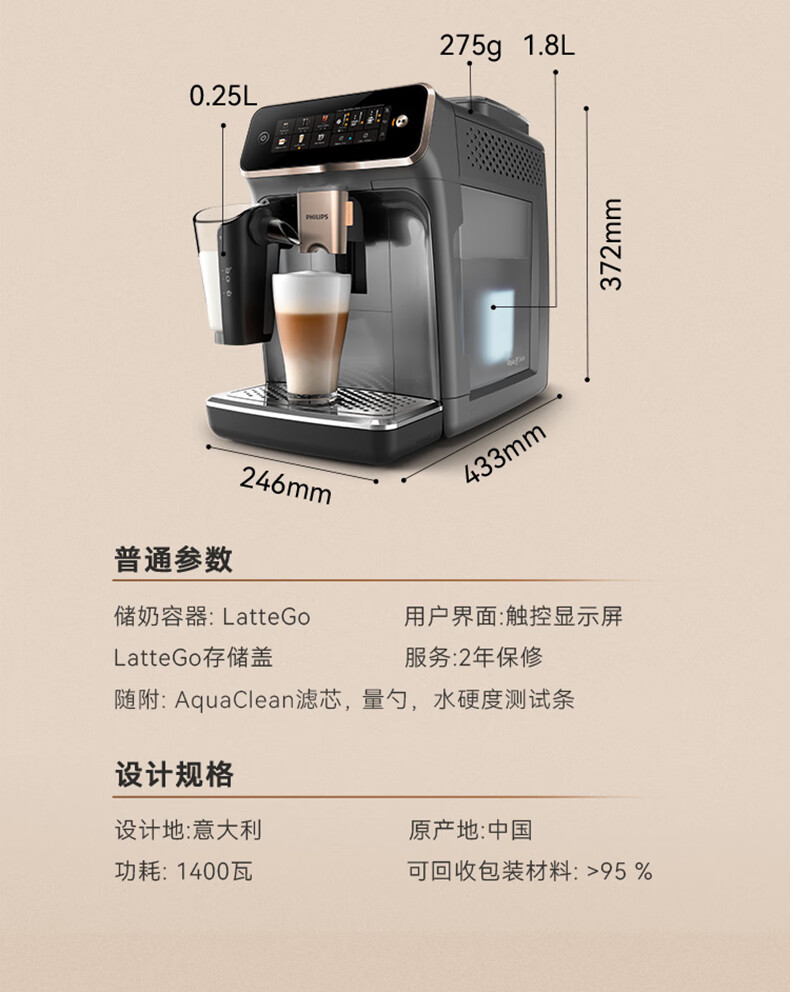 商品属性 [供应商] 得力集团有限公司 [品牌] 飞利浦(PHILIPS) [型号] EP3341/62