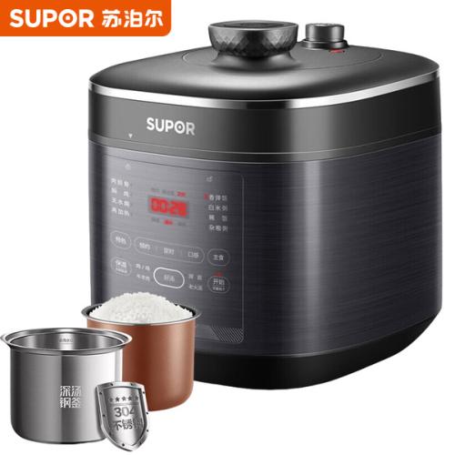 商品属性 [供应商] 上海邮乐网络技术有限公司 [属性名称] 属性值 [产品名称] 苏泊尔电压力锅 [产品型号] 50FC8708 [内胆] 铜晶深汤釜+深汤钢釜 [容量] 5L [压力] 70kPa [内胆尺寸] 220x165mm [产品尺寸] 286.5x255x301.5mm