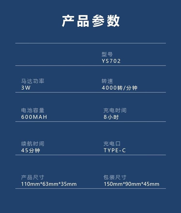 商品属性 [供应商] 深圳齐心集团股份有限公司 [品牌] 现代(HYUNDAI) [型号] YS702 [充电时间] 8小时