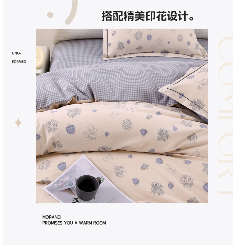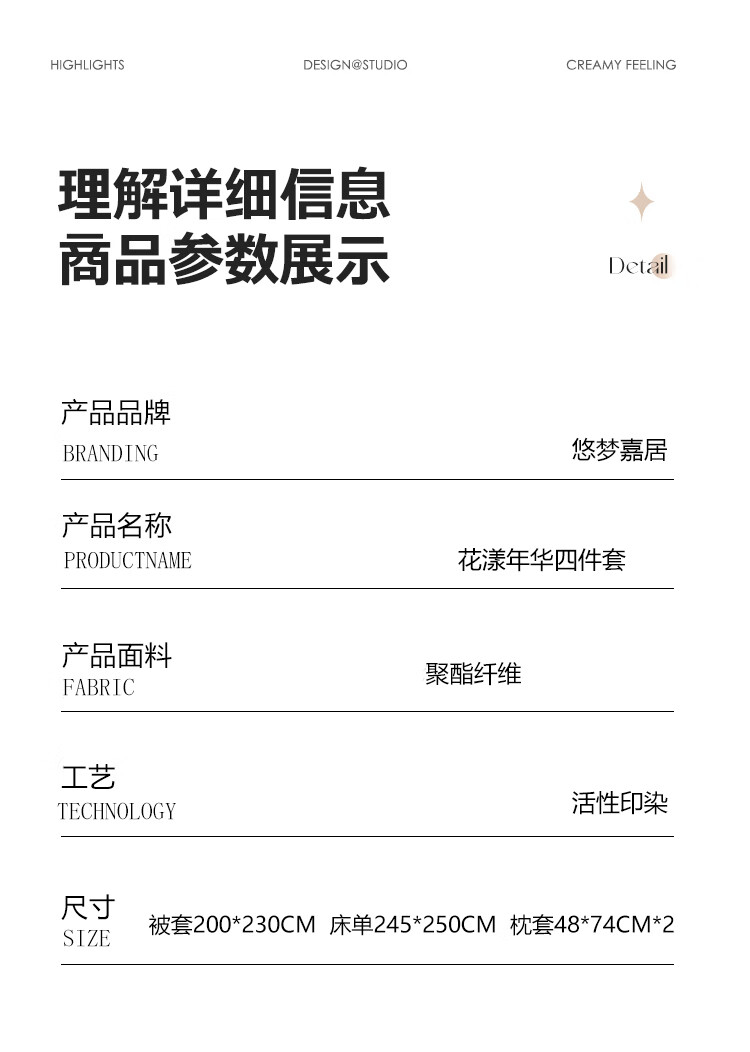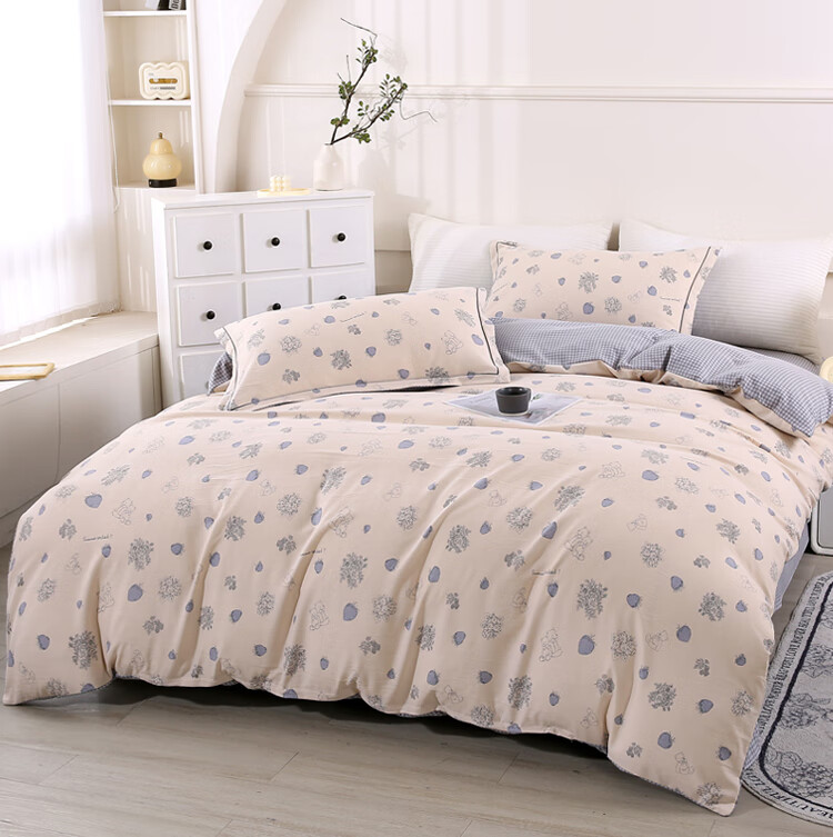 商品属性 [供应商] 德致商成集团有限公司 [面料支数] 60支 [床单款式] 床单式 [面料] 水洗棉 [风格] 简约风 [包装清单] 被套床单枕套四件套*1