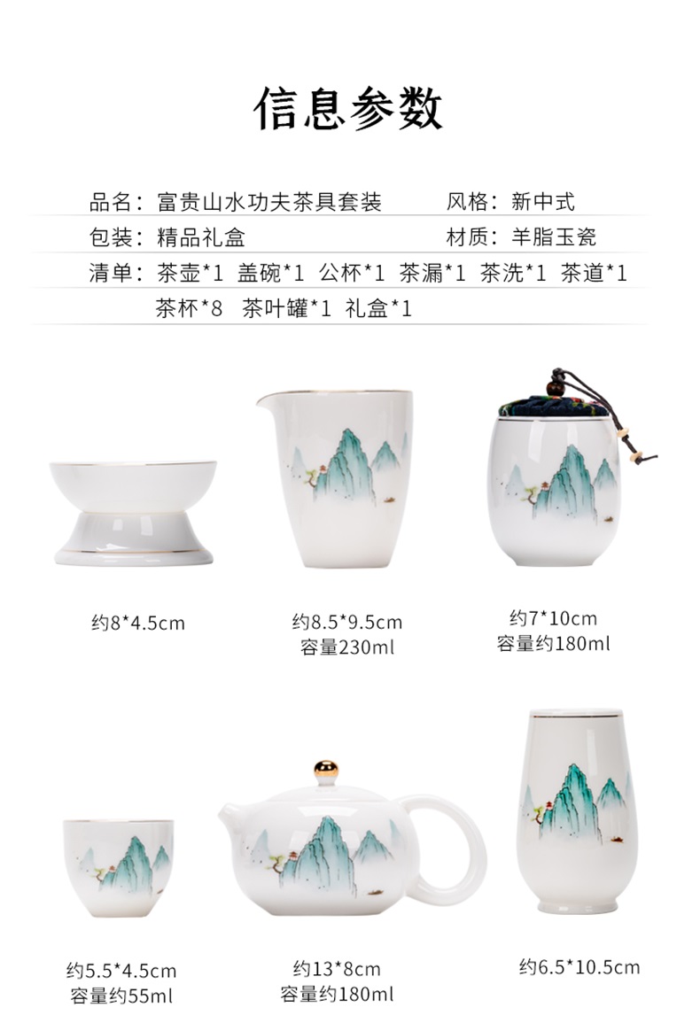商品属性 [供应商] 科力普科技集团股份有限公司 [尺寸] 6.2*4cm [材质] 陶瓷 [容量] 约60ml(茶杯) [品牌] 金镶玉 [型号] 富贵山水