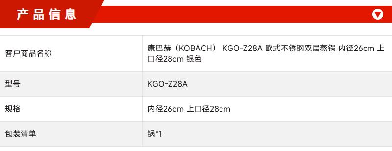 商品属性 [供应商] 史泰博(上海)有限公司 [品牌] 康巴赫(KOBACH) [型号] KGO-Z28A